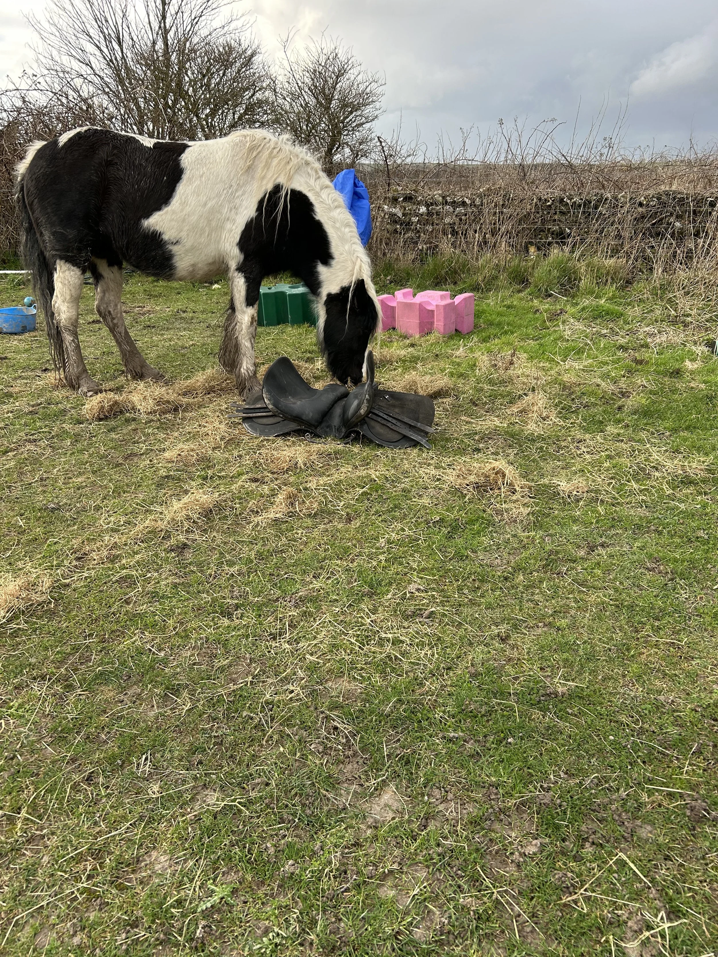 Betty is a rescue cob, who was found pregnant in a field of other horses..She developed sudden onset changes in her behaviour not long after moving to a new yard with her caregiver. Prior to this she had learnt a range of different cues with positive reinforcement.